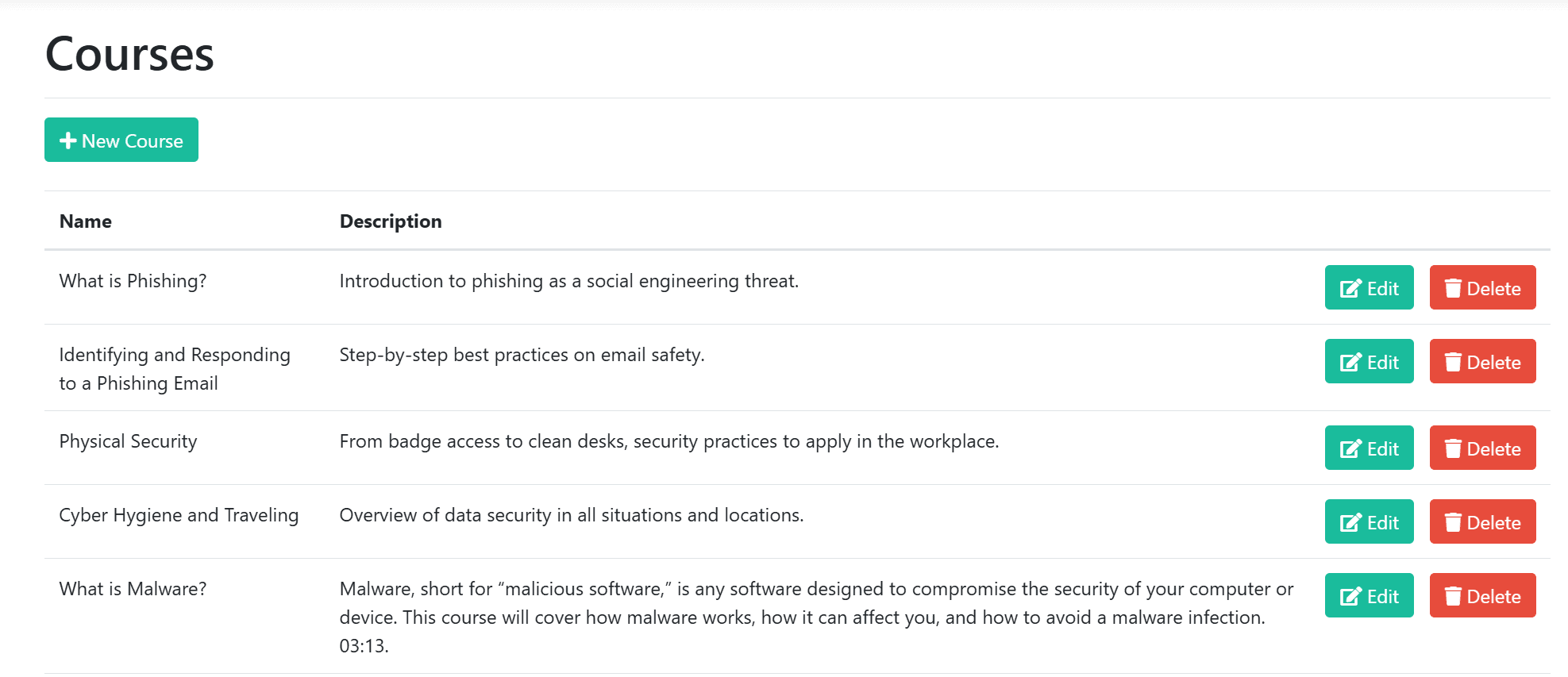 TracePhishing comes with four security awareness training courses that focus on phishing-based attacks. Each course includes a short training video and a three-question quiz that users must get 100% on to pass. Phishing tests can be configured to automatically assign training to users who fail the phishing test.